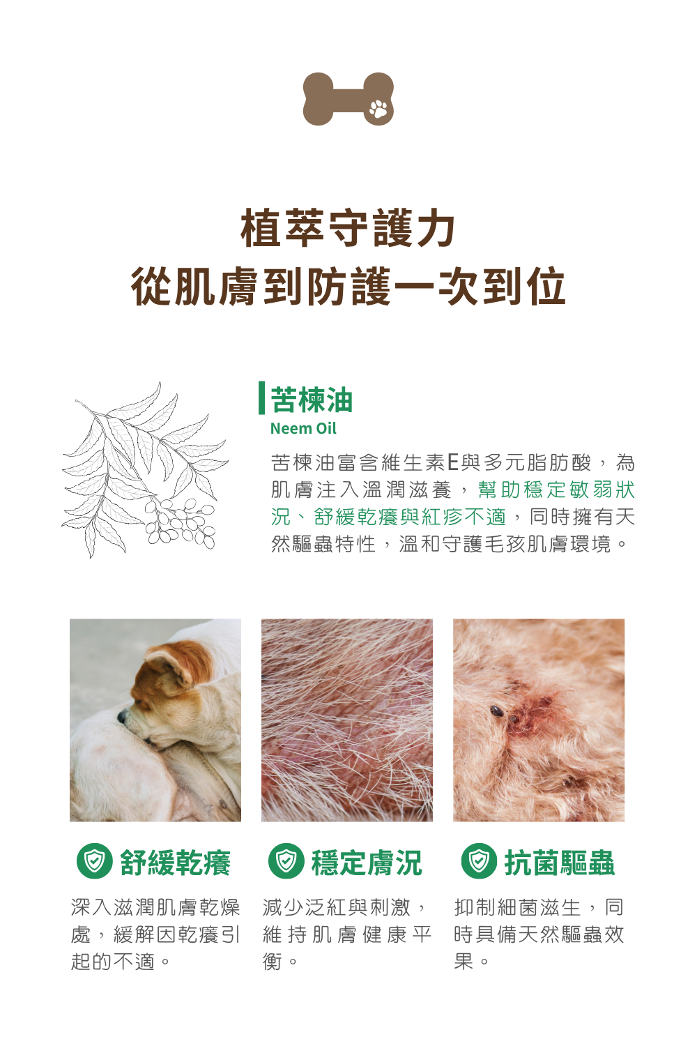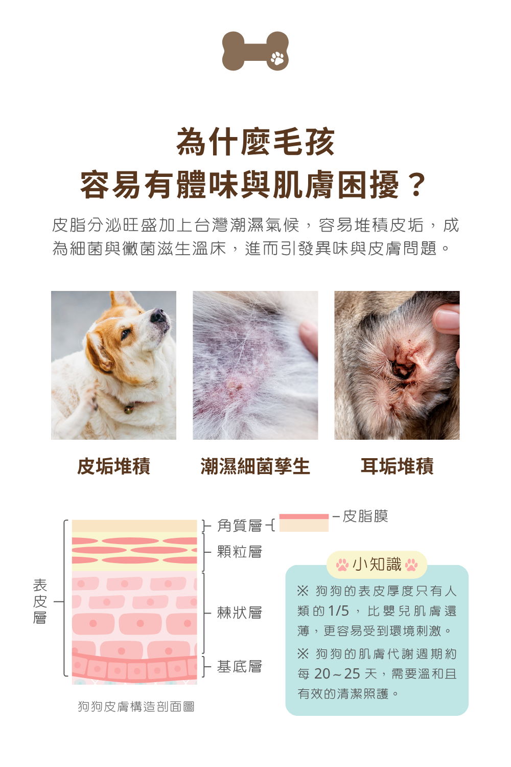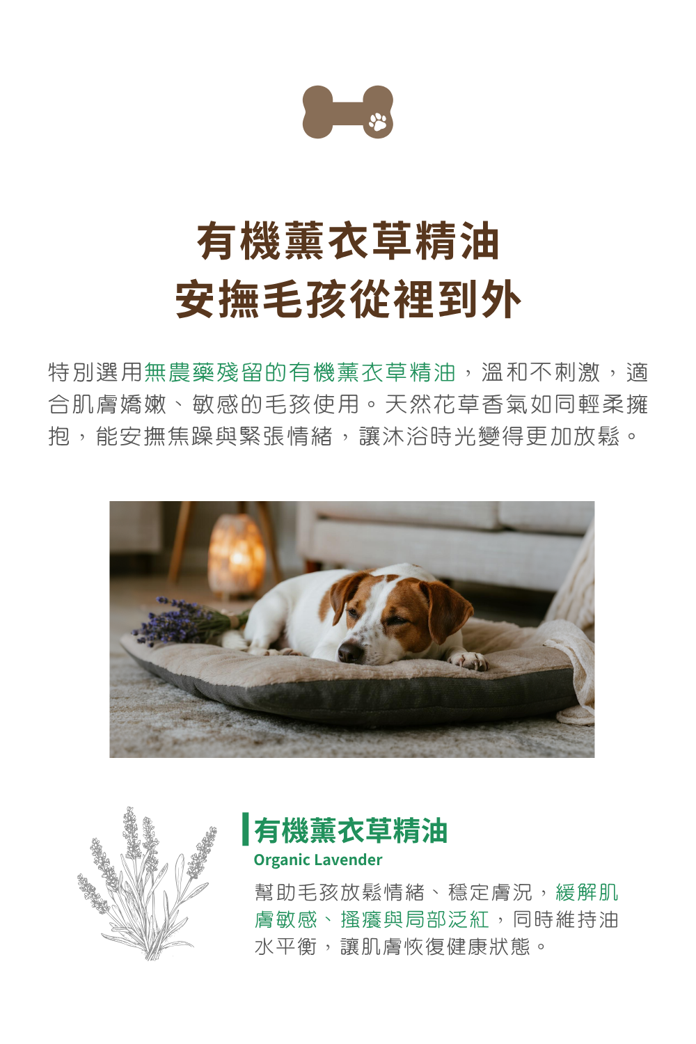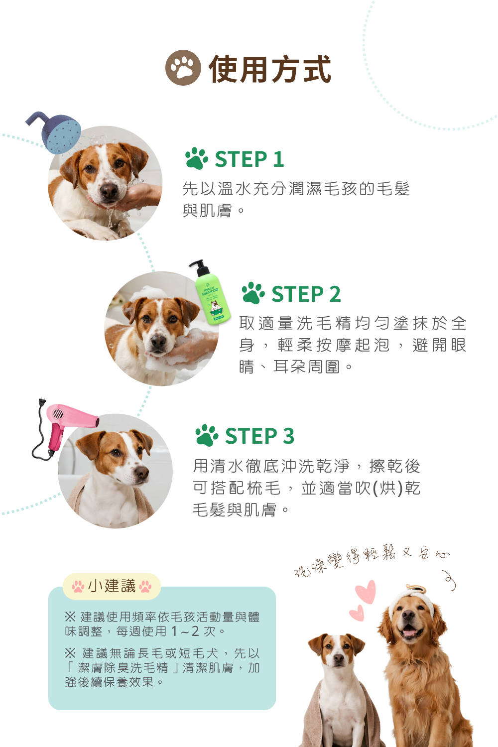用途|用於清潔犬隻毛髮與皮膚,維持毛髮潔淨柔順與皮膚健康。