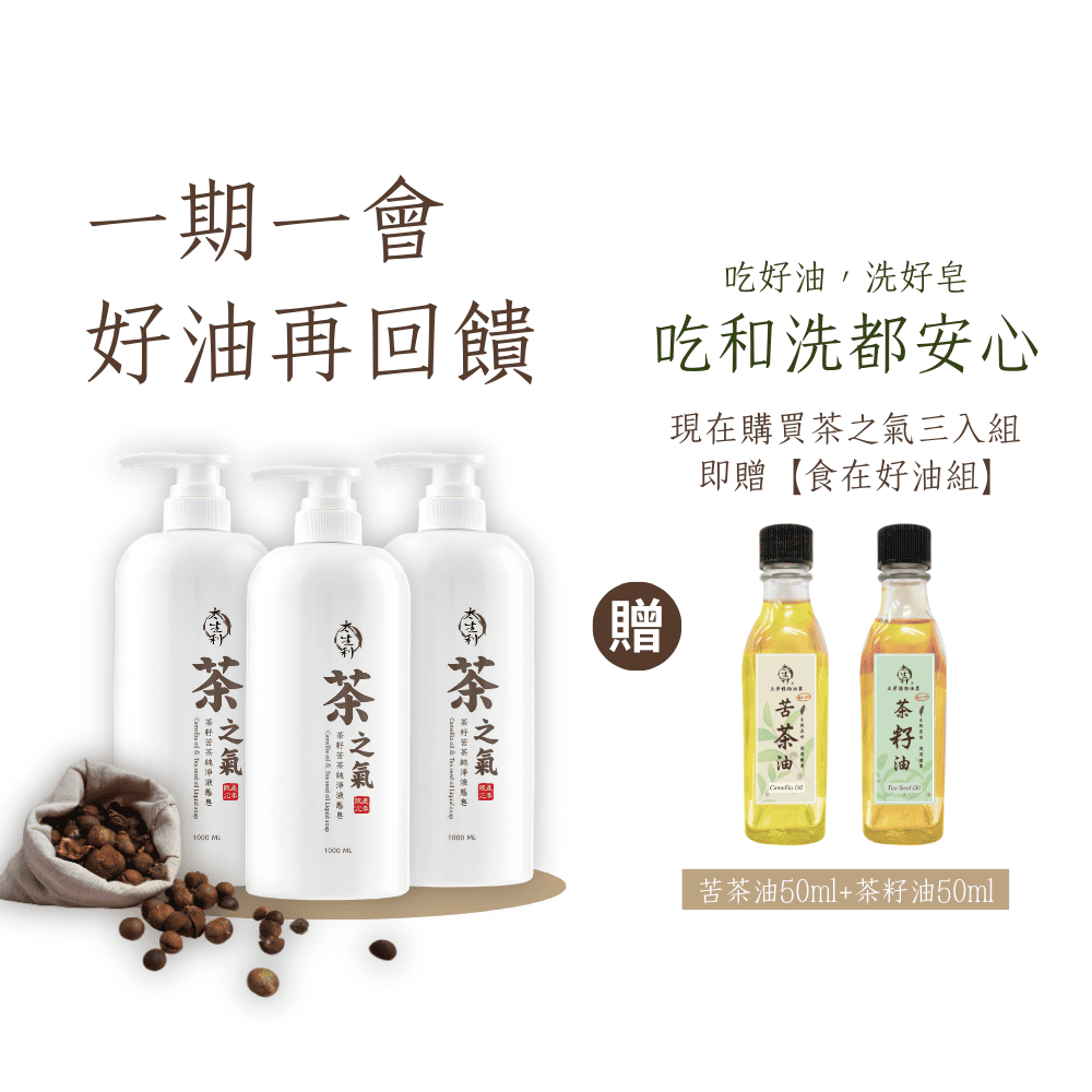購買茶之氣三入組所贈贈品【食在好油組】為植物萃取所得的油品,而在萃取過程中,可能會產生少量雲霧狀沉澱物質。因此,若在產品底部有些微沉澱物,請不必擔憂,這屬於正常現象,請安心使用。