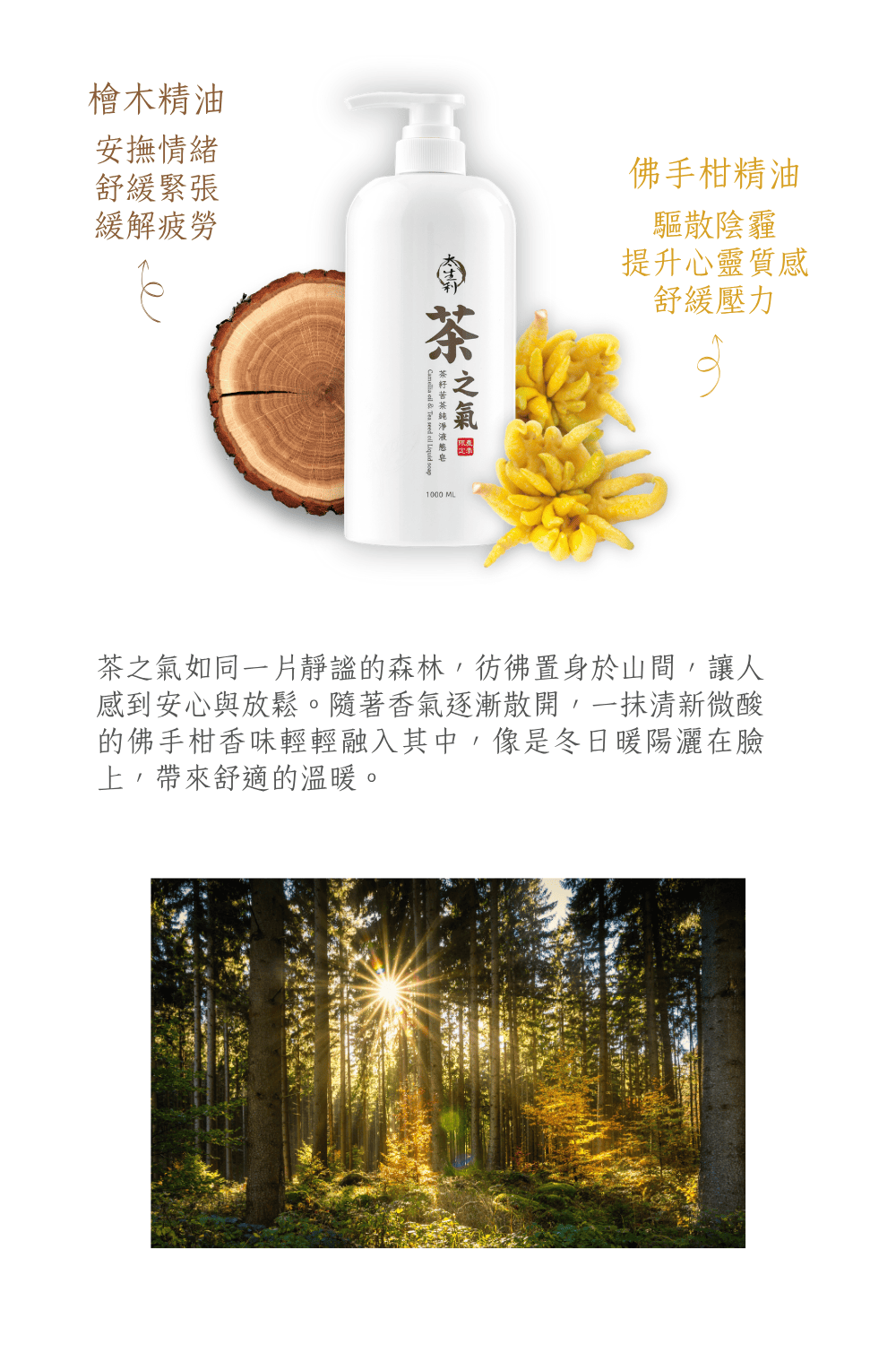全成分|水、苦茶油、茶籽油、橄欖油、氫氧化鉀、蓖麻油、椰子油、甘油、檜木精油、海藻膠、薰衣草精油、甜橙精油、佛手柑精油、檀香油、丁香精油